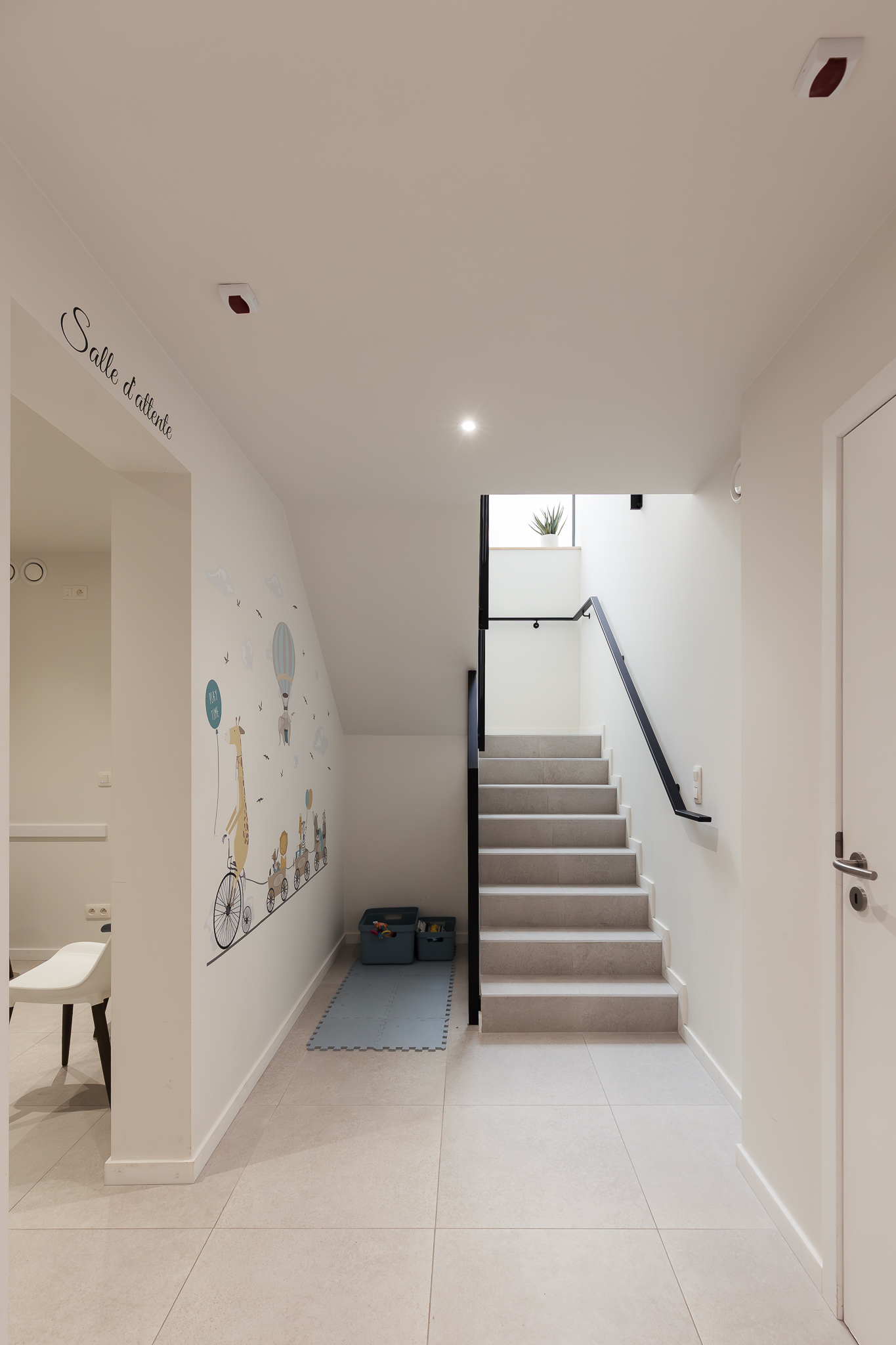 Situé en plein centre de Louvain-la-Neuve, ce projet d’architecture d’intérieure a transformé un espace brut et vide en un lieu dédié à la santé et au bien-être. Niché au rez-de-chaussée et en sous-sol d’un immeuble résidentiel, ce cabinet médical offre désormais un cadre fonctionnel, accueillant et pensé pour le confort des patients et des praticiens.
