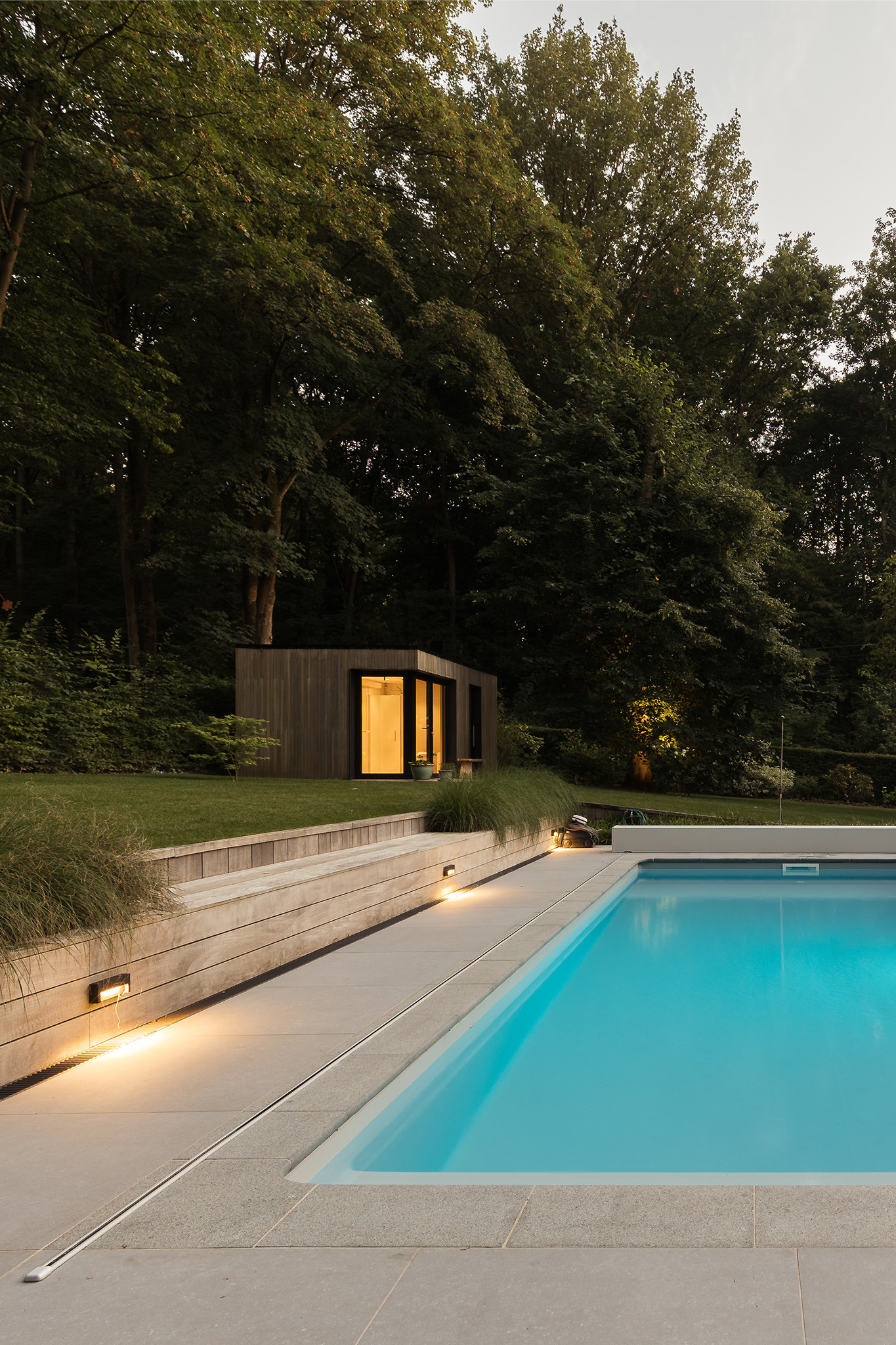 Dans la continuité du projet, une piscine et son poolhouse, également habillés de bardage bois, viennent compléter l’ensemble. Leur conception reprend les mêmes codes architecturaux, créant une unité esthétique et une atmosphère chaleureuse au cœur de la nature.